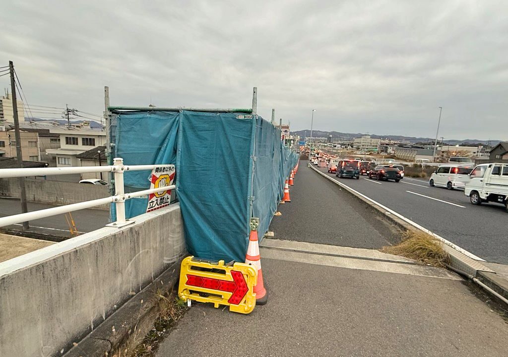 工事現場の西側の大通りは交通量が多いですが、東側は落ち着いた雰囲気でした。