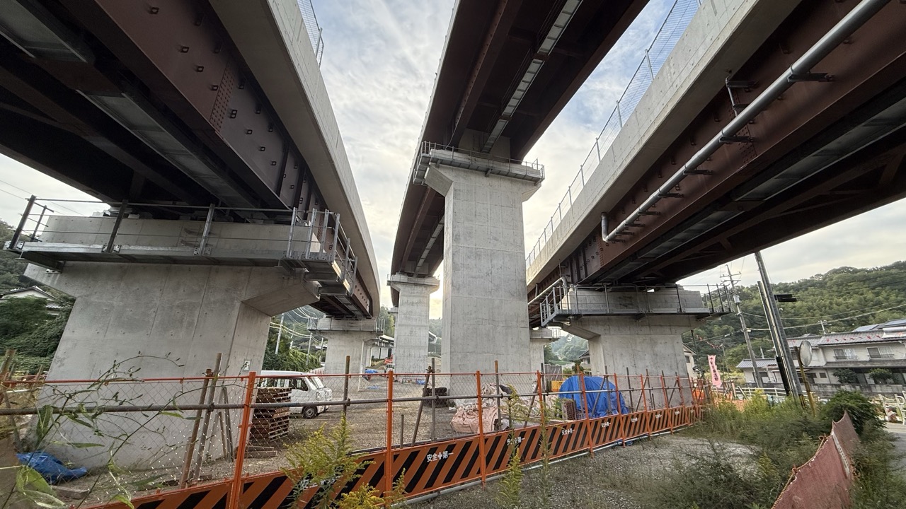 道路の下にはそれぞれ橋脚があり、橋脚付近は立入禁止になっていました。