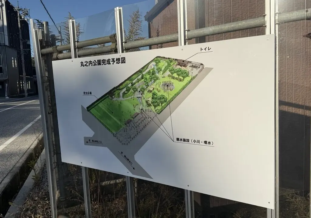 工事現場付近には完成予想図のイメージ画像も設置されていました。