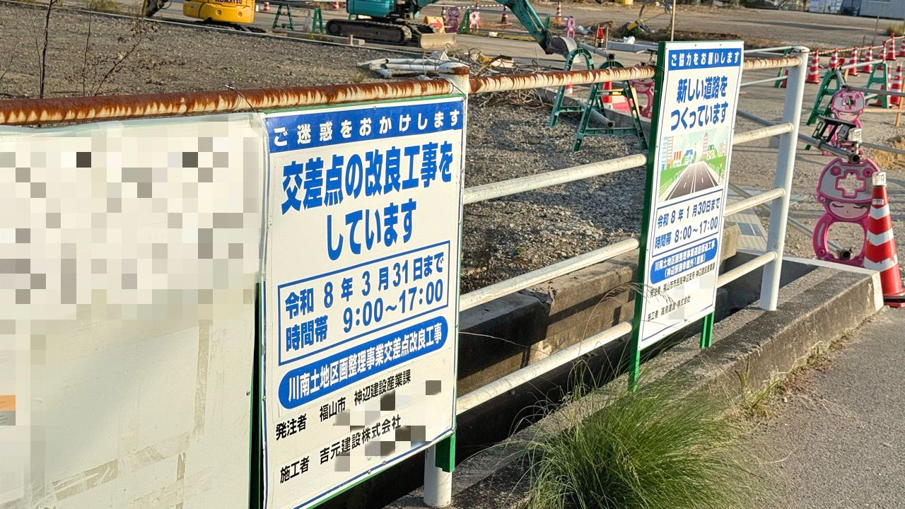 【福山市】神辺町川南で交差点の改良工事と新しく道路を作る工事が同時に行われています