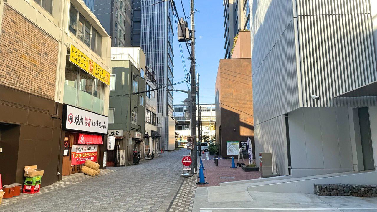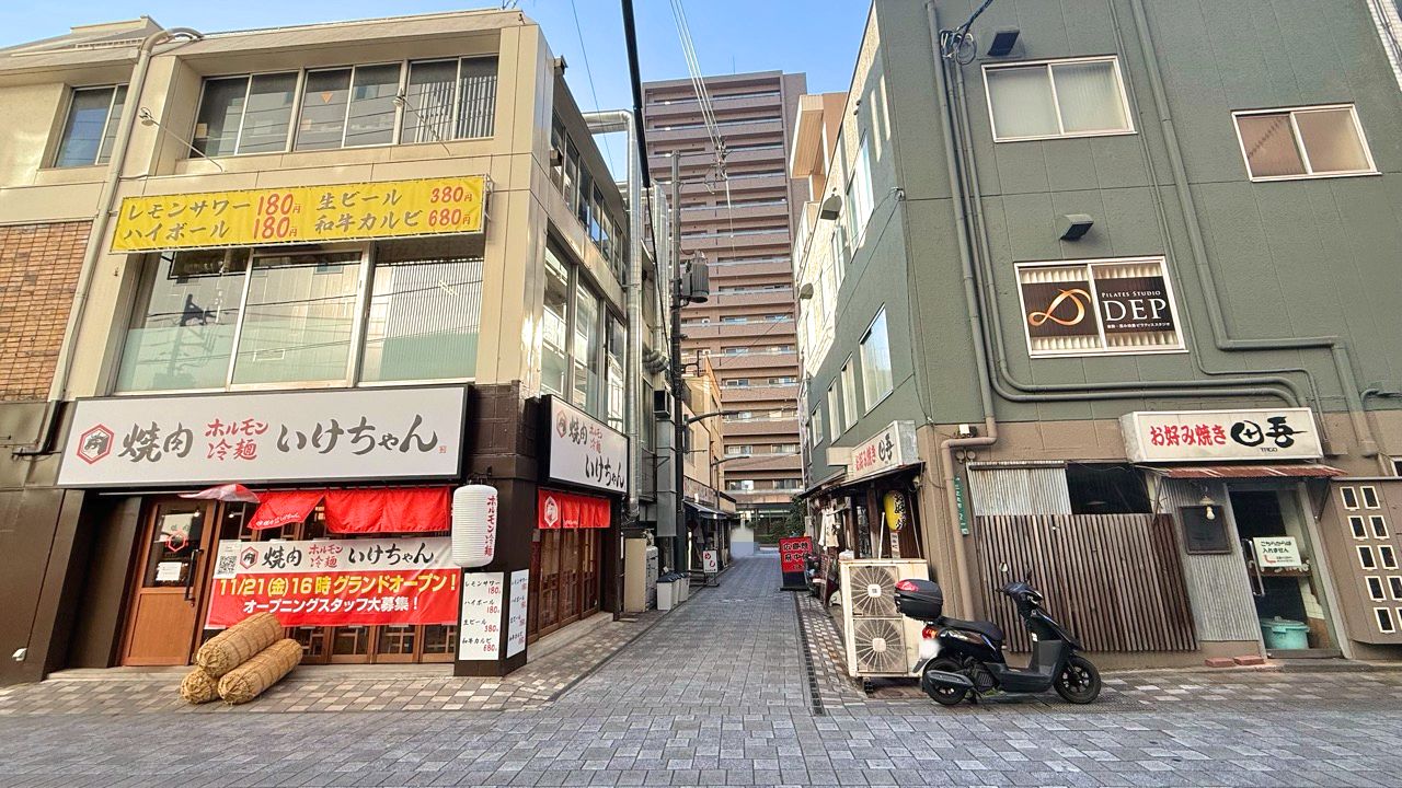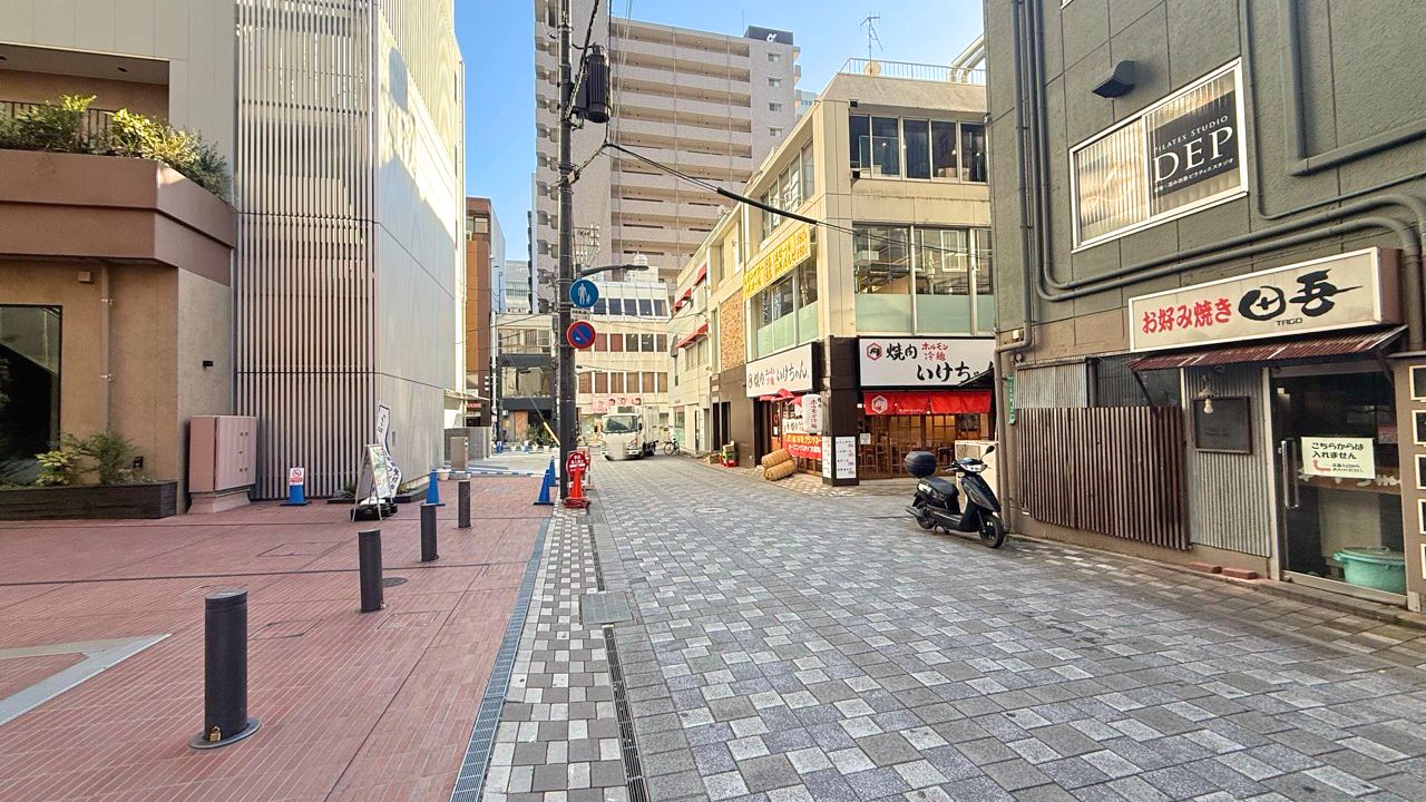 周辺は飲食店が多く集まるエリアで、道路を挟んですぐ北側には「お好み焼き 田吾」があります。