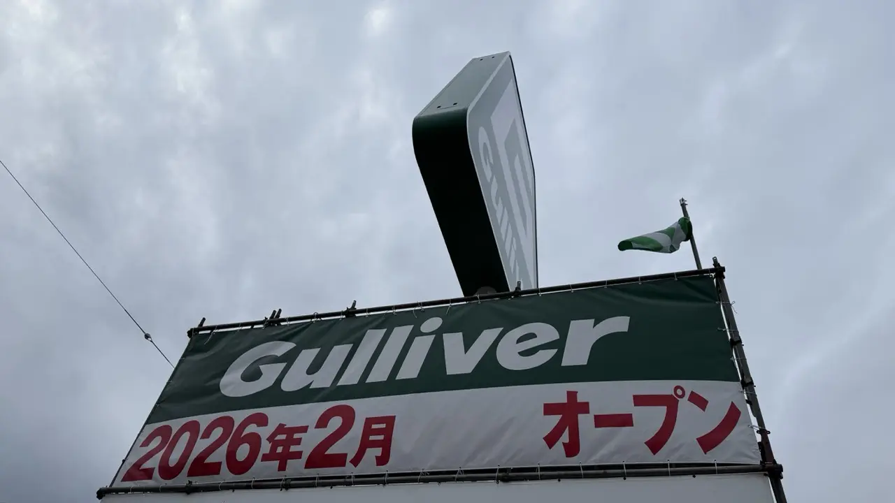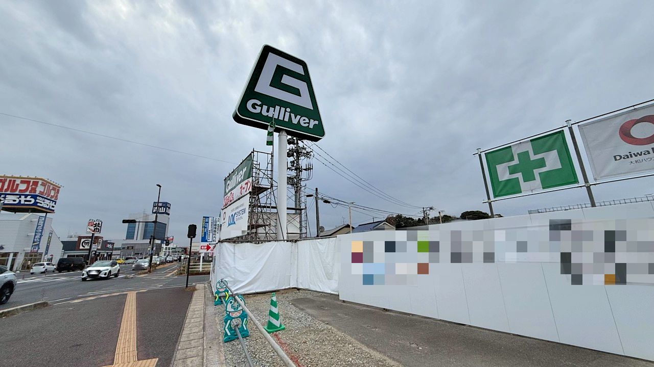 ガリバーと聞くと福山市蔵王町にある靴屋さんの「シューズランドガリバー 蔵王店」を連想する方も多いかもしれませんが、看板のロゴからして中古車の売買を行っている「Gulliver」のようですね。