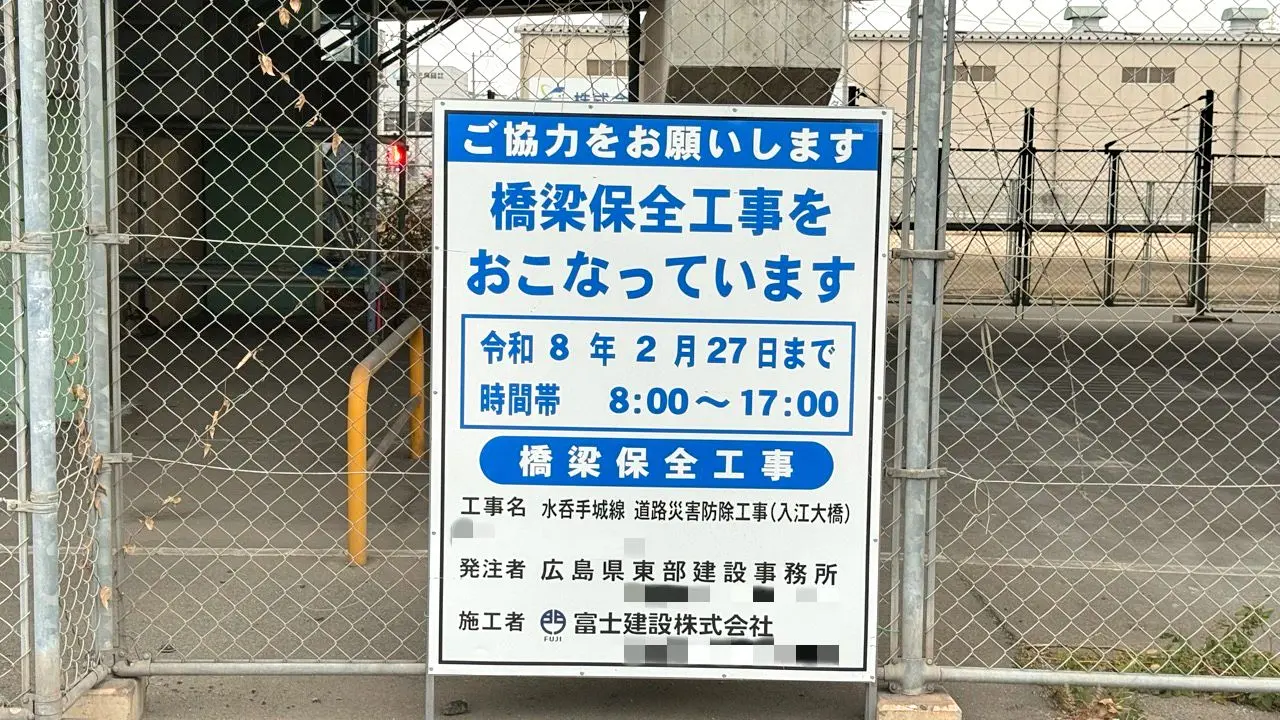 橋梁保全工事が行われている2026年2月27日まではお気をつけ下さい。