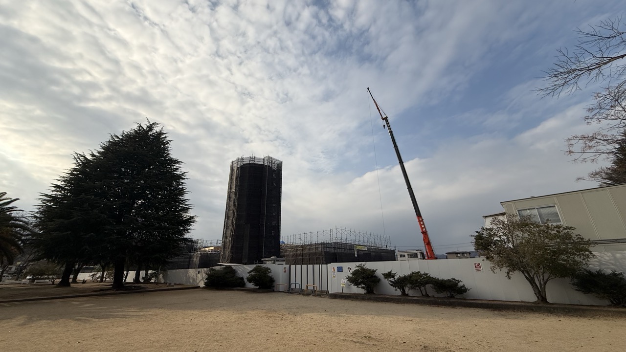 五本松公園側から見ると、大きなクレーンが稼働しているのが分かりますね。