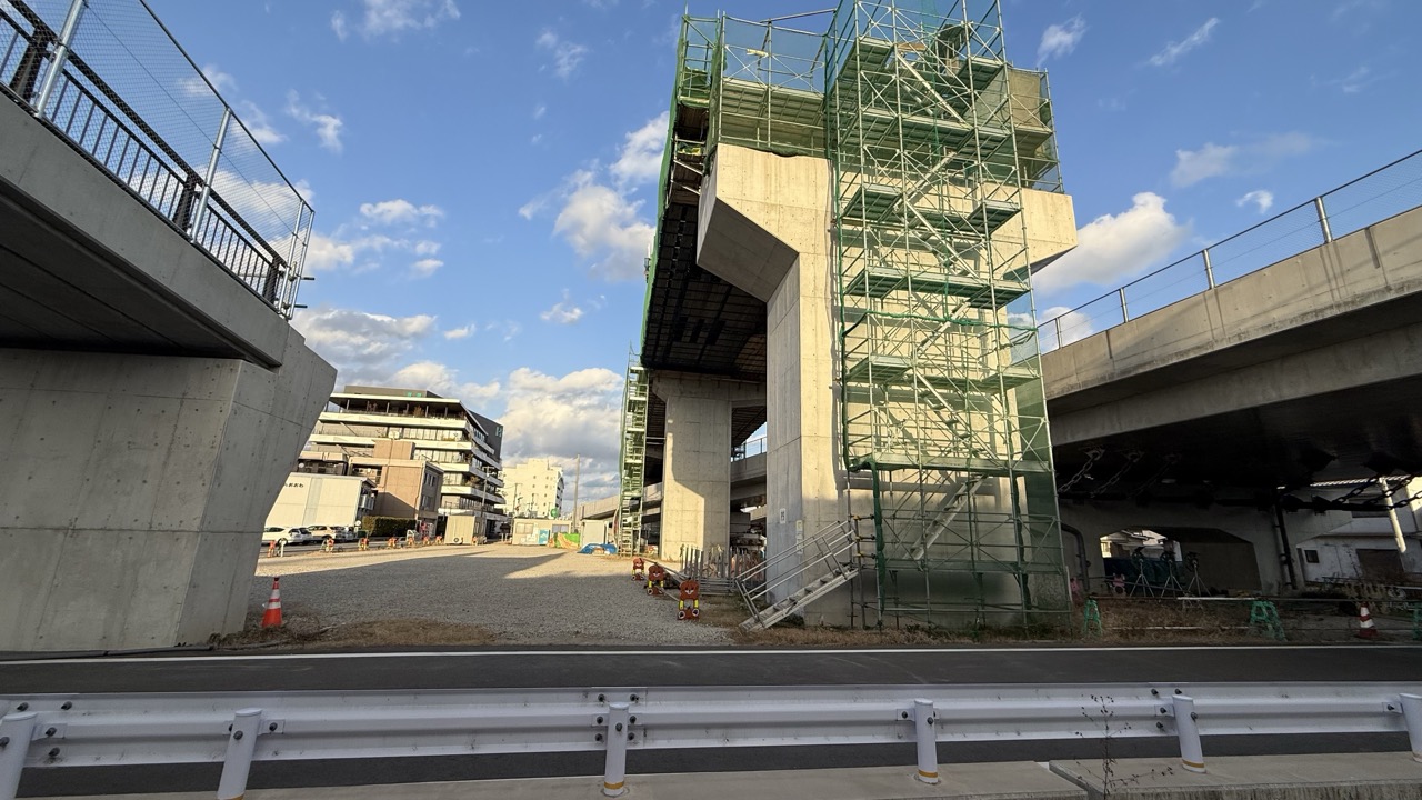 【福山市】「福山沼隈線道路改良工事」西側の構造物から足場が撤去されていました