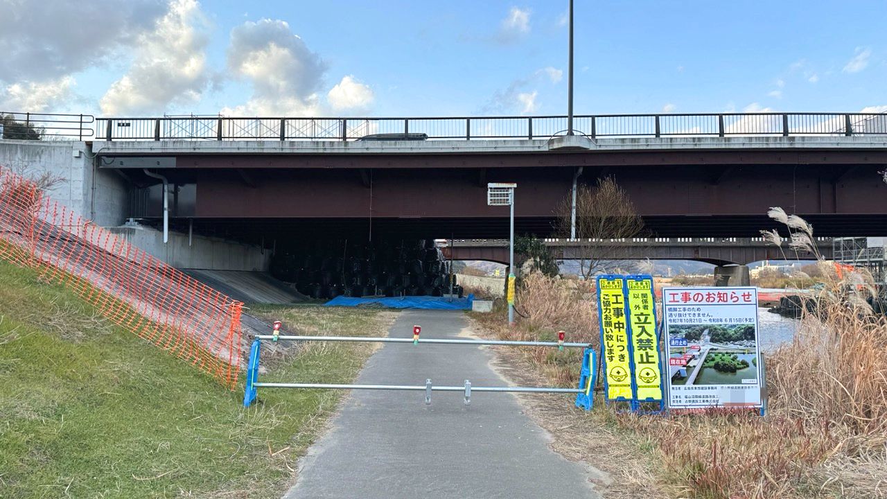 【福山市】旧「草戸大橋」付近の土手の歩道が通行禁止になっています