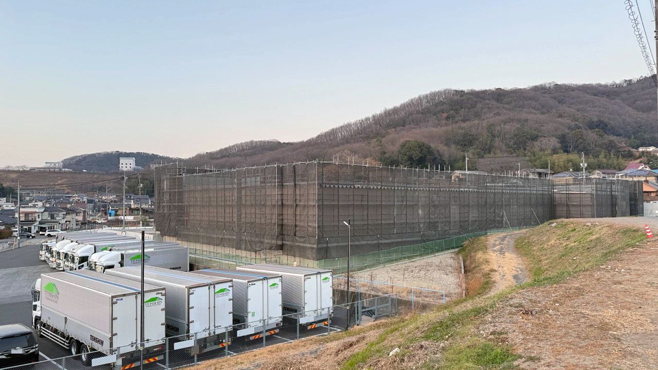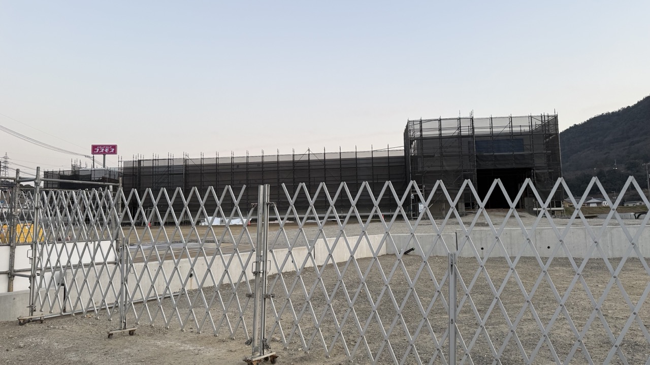 2026年1月17日に「まごころの湯」跡地の工事の様子を見に行くと、足場が設置され建物工事が始まっていました。