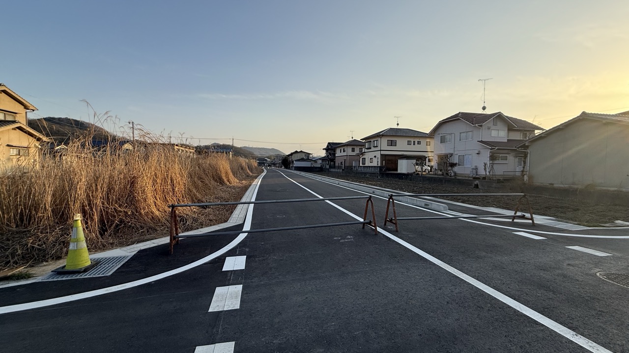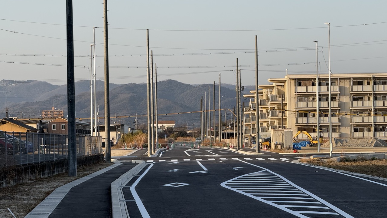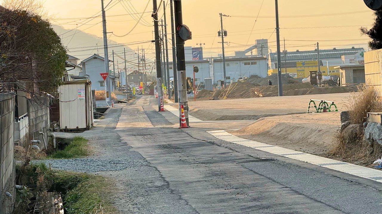 2026年1月17日に「神辺町川南」付近で行われている道路工事の様子を見に行くと、アスファルト舗装が進んでいました。