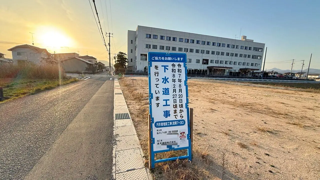 工事現場付近には下水道工事の告知の看板が設置されていました。