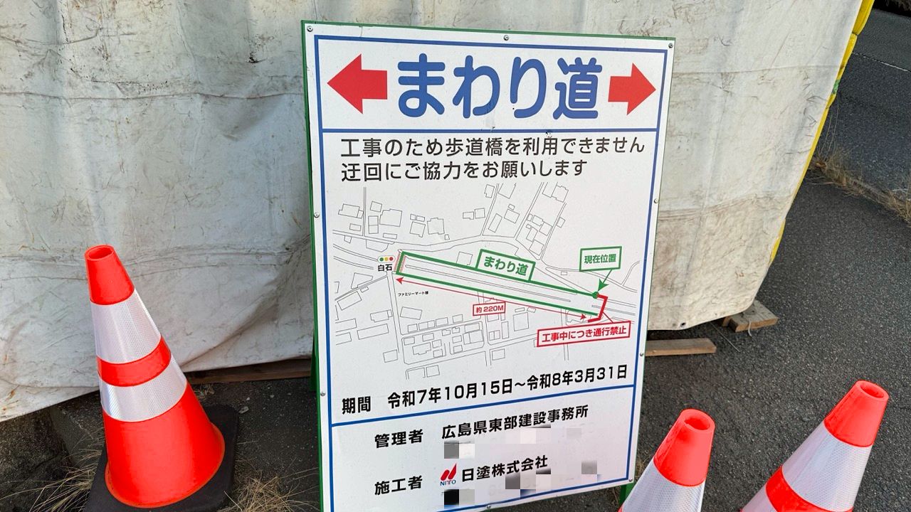 3月31日まではまわり道が必要なので、千田歩道橋の近くを通行する予定がある方はお気をつけ下さい。