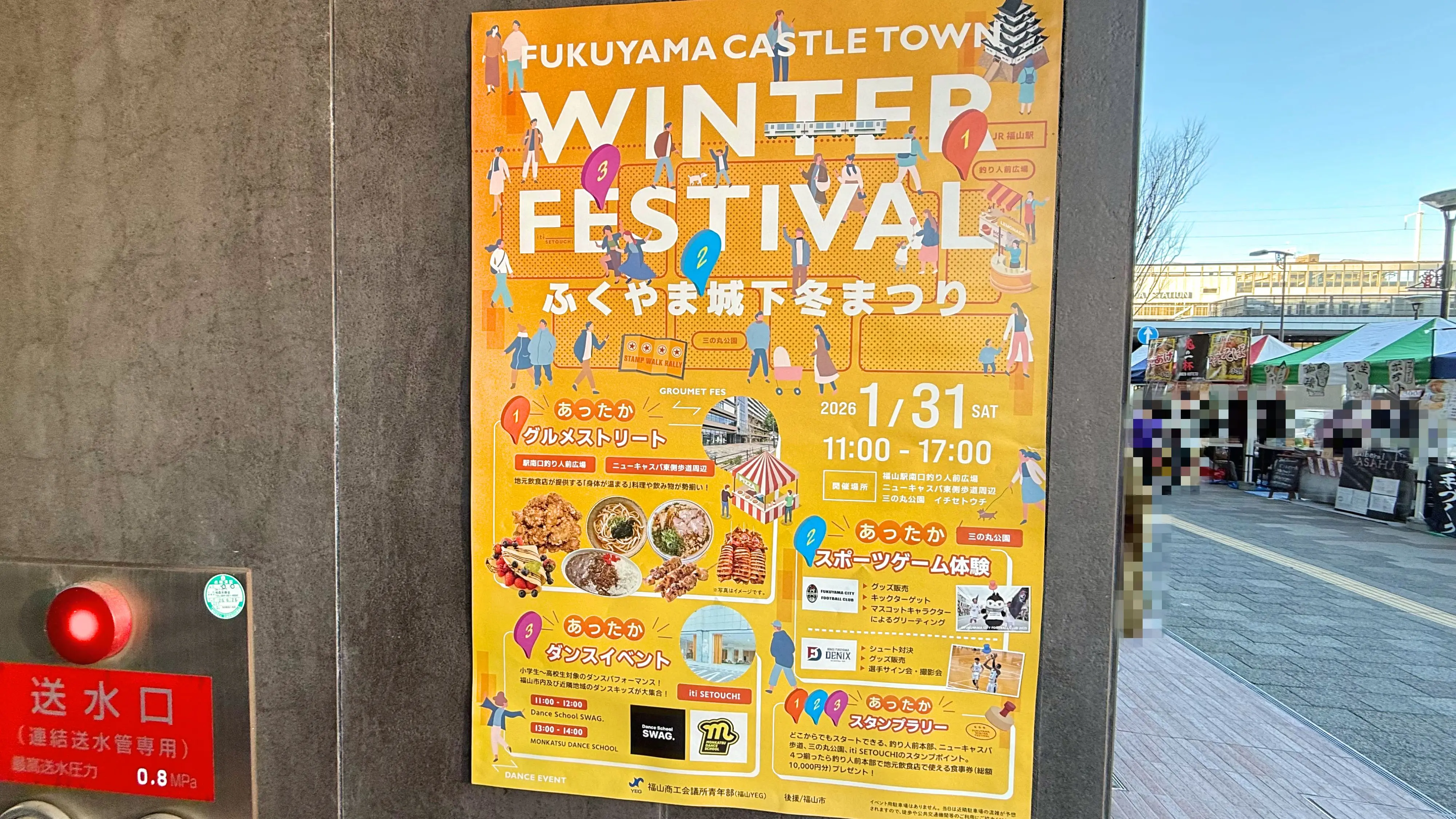 2026年1月31日に福山駅前の様子を見に行くと、「WINTER FESTIVAL ふくやま城下冬まつり」が開催されました。