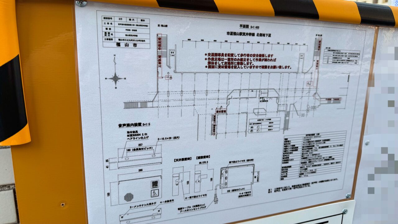 【福山市】3月19日まで福山駅前地下道で「音声案内装置設置工事」が行われています