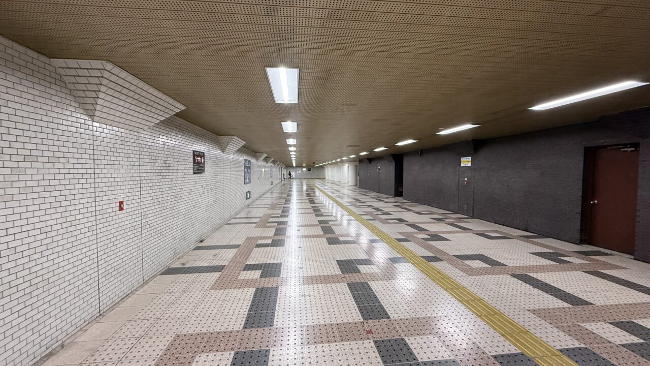 工事が行われている場所はこの辺り(福山駅前地下道)↓