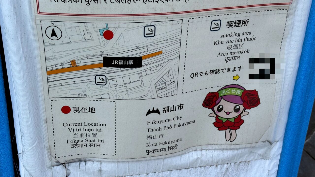 福山駅ばら公園口(南口)から徒歩すぐの場所にも喫煙所があります。