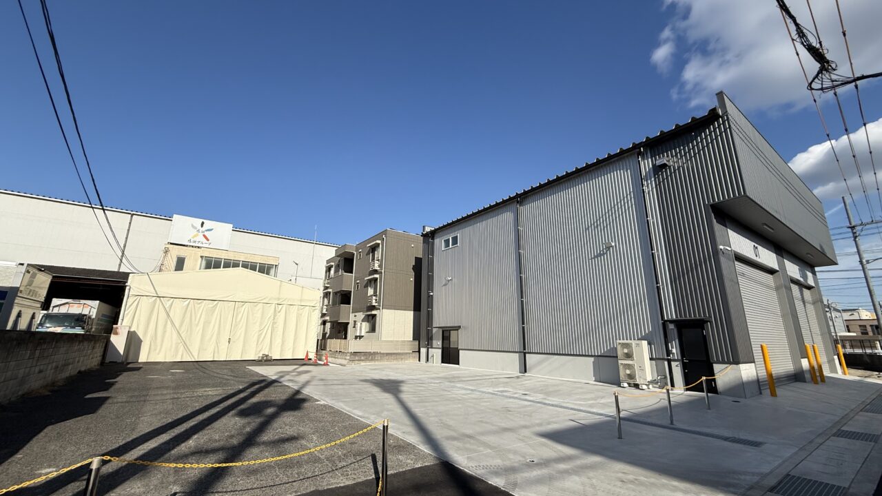 整備工場と新事務所の外壁はどちらも美しく仕上げられていました。