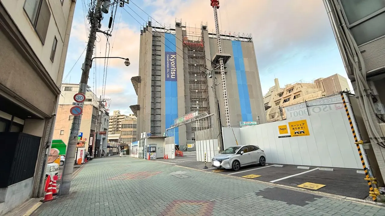 2026年1月31日に「ウエスギ福山店」跡地の様子を見に行くと、敷地の一画に「タイムズカー ヴェルディ・ザ・タワー福山」がオープンしていました。