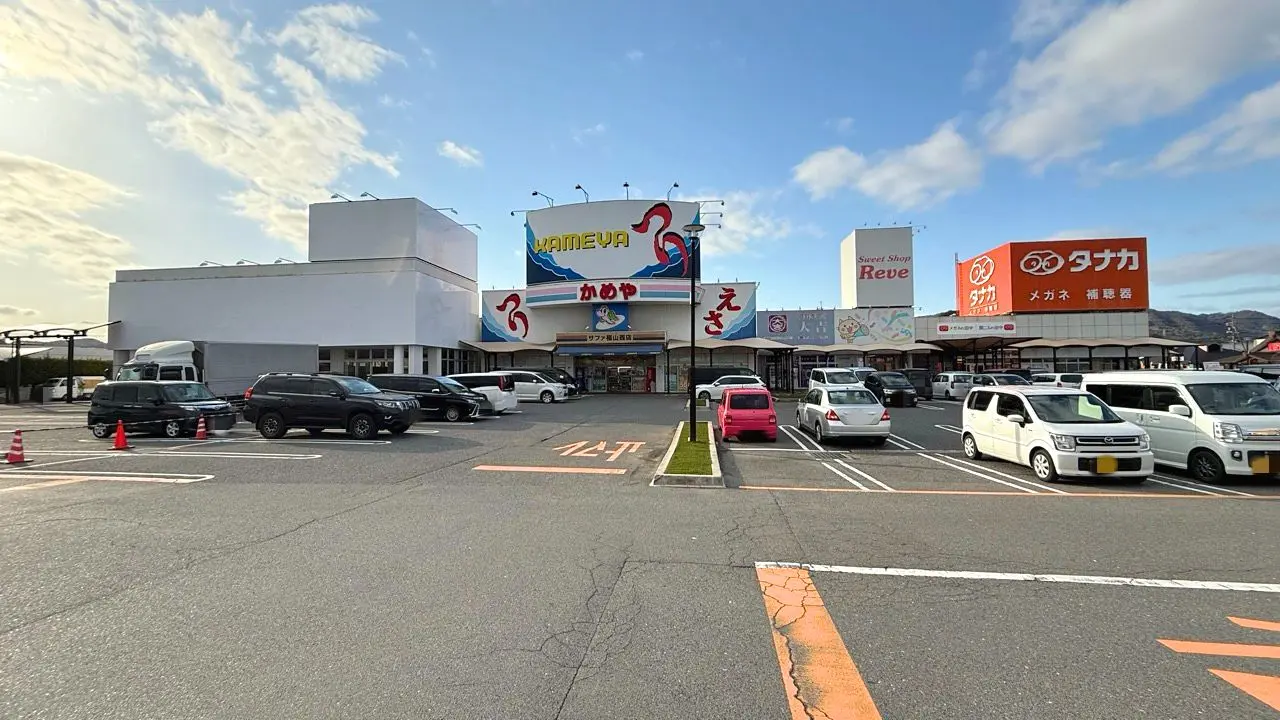 ドラッグセイムス サファ福山店は「サファ福山店」の敷地の一画にあり、「かめや釣具 サファ福山西店」の西隣に位置します。