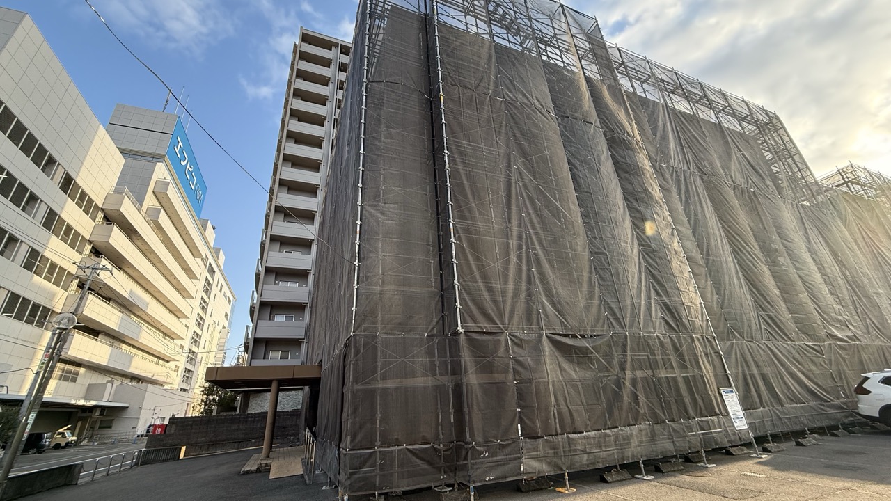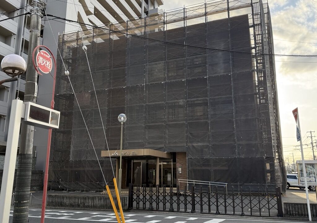 【福山市】「JAビル 福山」に足場が設置されていました