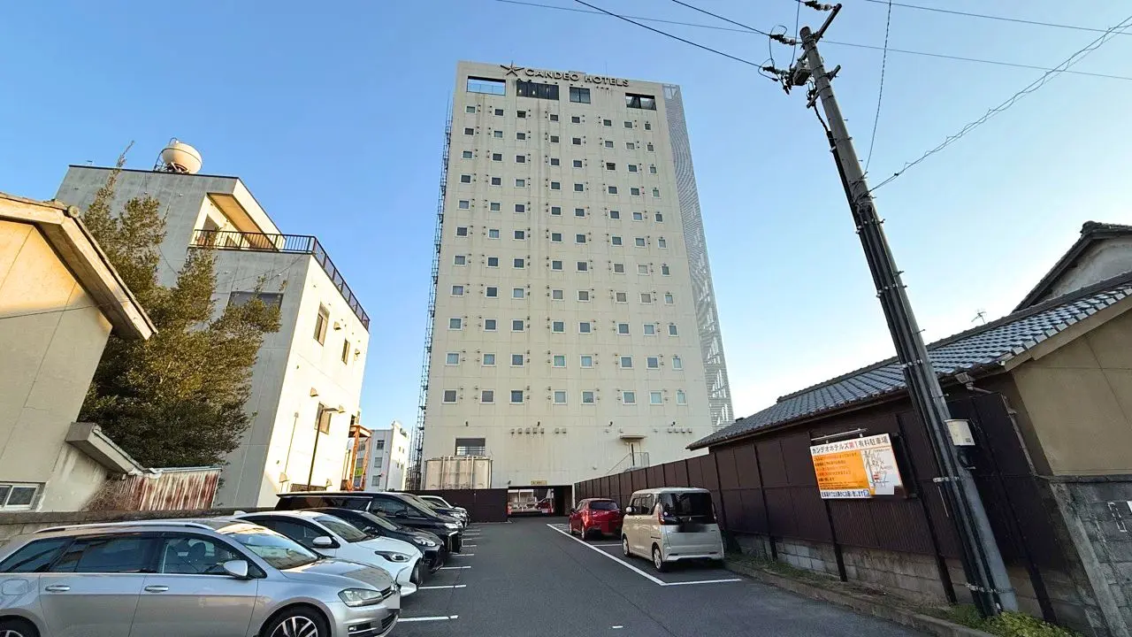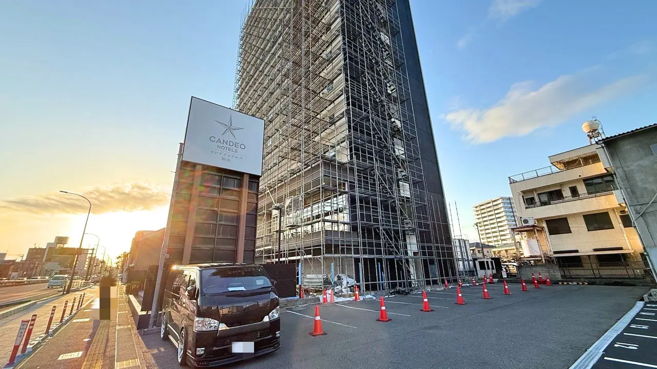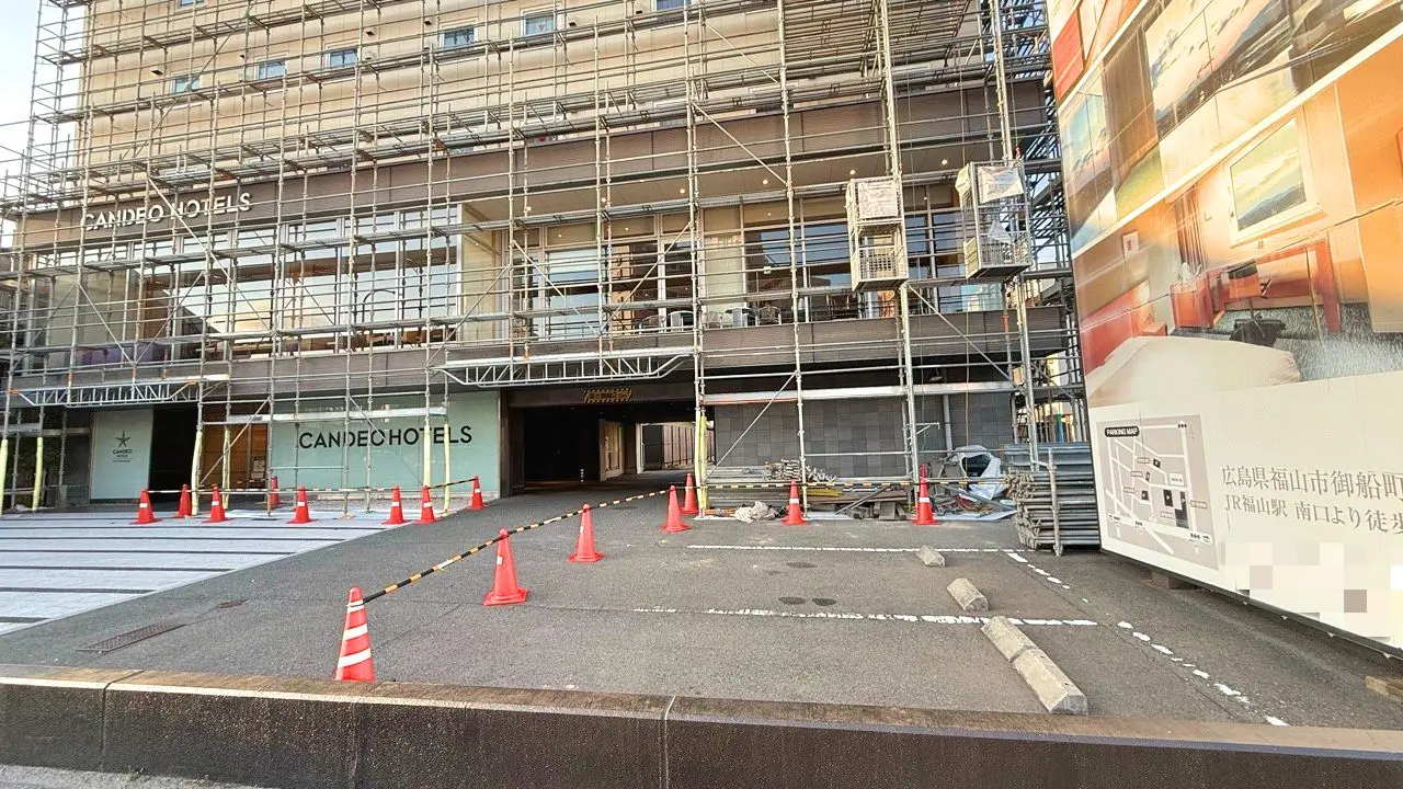 2026年2月28日に「カンデオホテルズ 福山(CANDEO HOTELS FUKUYAMA)」の様子を見に行くと、建物付近に足場が設置されていました。