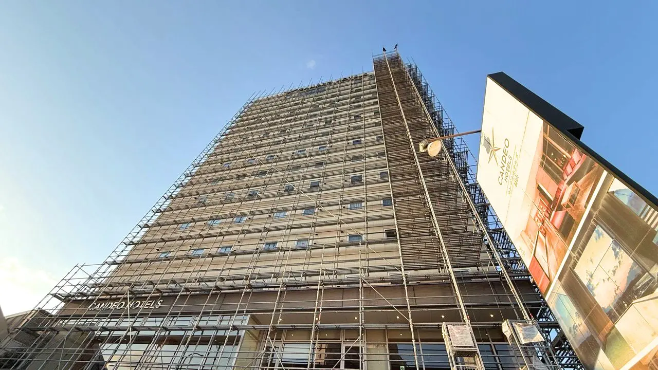 【福山市】「カンデオホテルズ 福山」の建物付近に足場が設置されていました