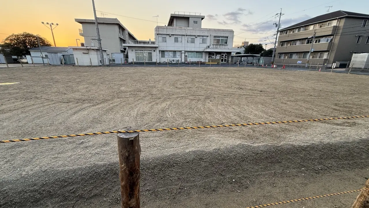 2025年12月13日に様子を見に行った時には「福山市立曙小学校 プール解体工事」が行われていましたが、2026年2月28日の段階では更地の状態になっていました。