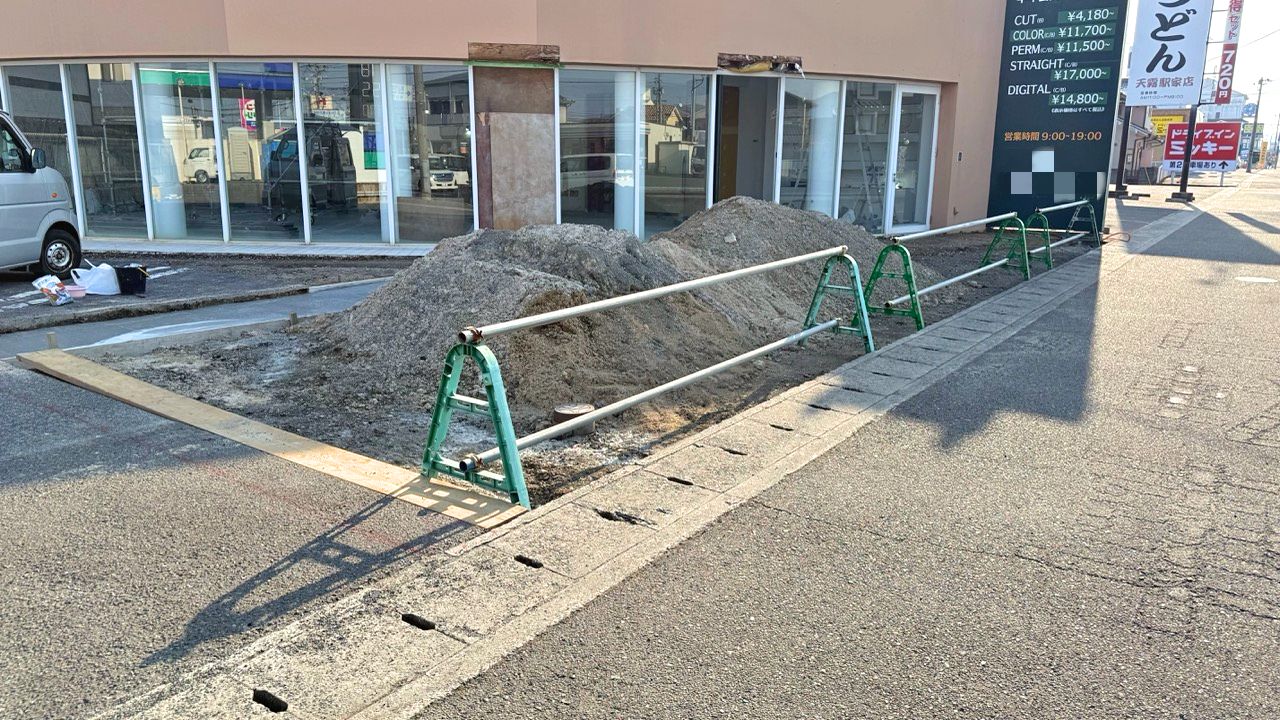 歩道と敷地の境界部分にはバリケードが設置され、バリケード付近には土砂が積み上げられていました。