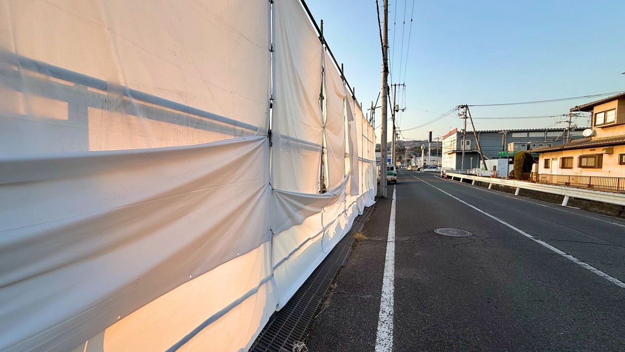 工事現場は白いシートで囲われていました。