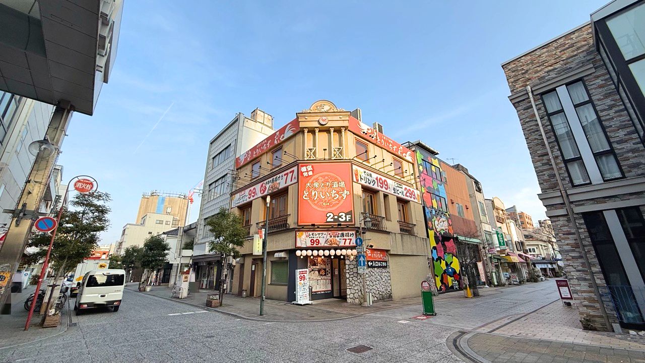 とりいちず 広島福山店は交差点の角地にあり、「久松通り」と「宮通り」に面しています。