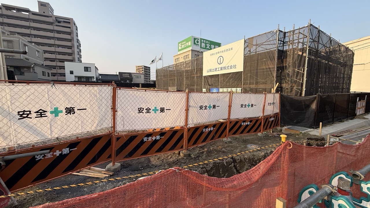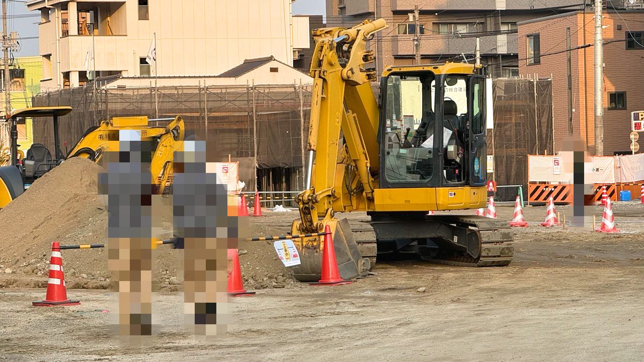 工事現場内には土砂が積み上げられており、複数の作業員さんが手際よく工事を進められていました。