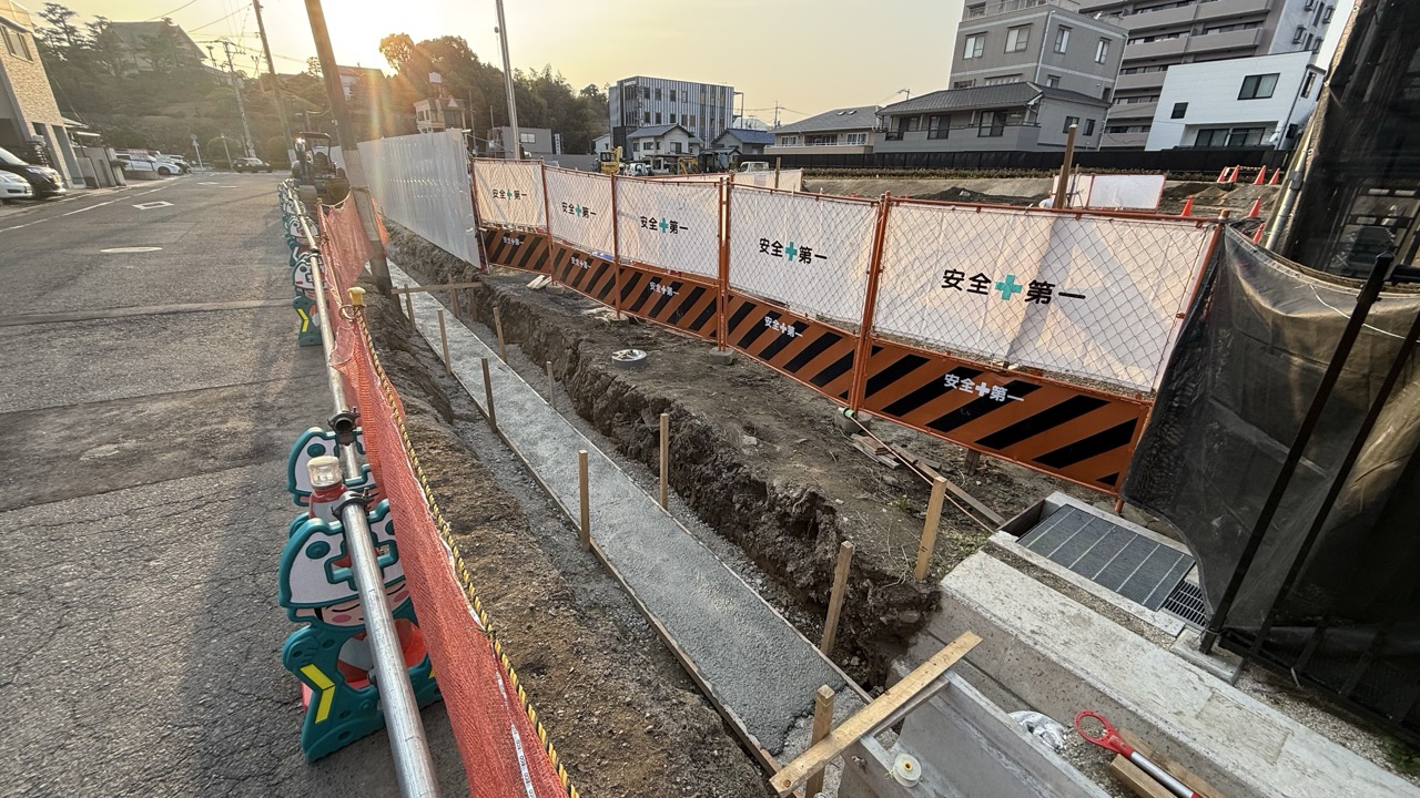 工事現場の南側の、歩道との境界部分でも工事が行われていました。
