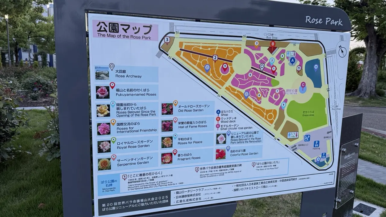 ばら公園には公園マップが設置されており、お目当てのバラがどこにあるのか分かりやすくなっています。